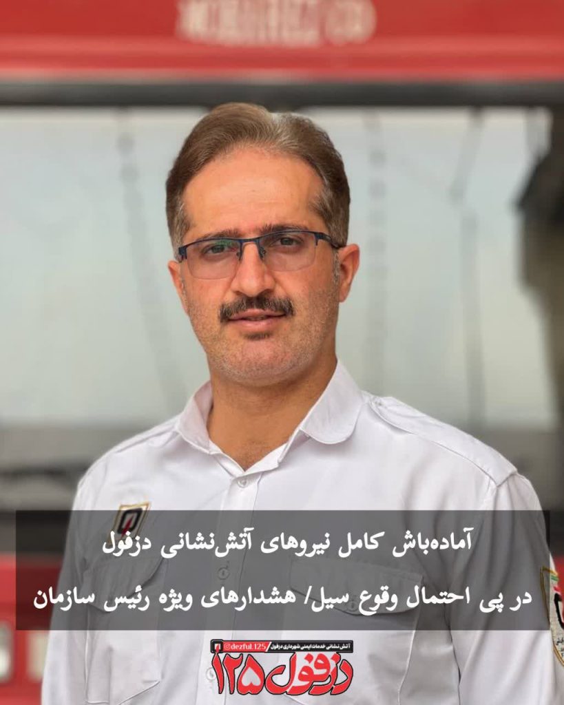 به گزارش روابط عمومی سازمان آتش نشانی و خدمات ایمنی شهرداری دزفول روحالله بهشتیفرد از اعلام آمادهباش صد در صد کلیه نیروهای ستادی و عملیاتی این سازمان در پی هشدارهای هواشناسی مبنی بر احتمال وقوع سیل در منطقه خبر داد